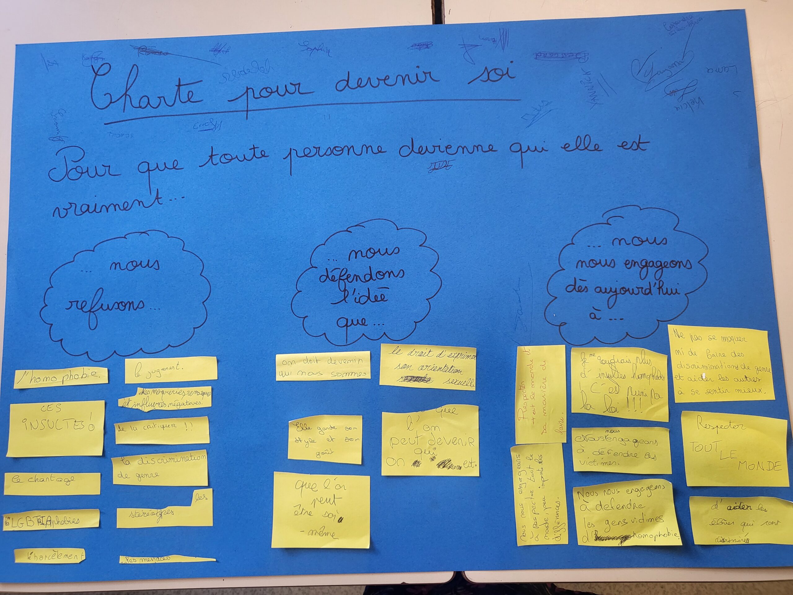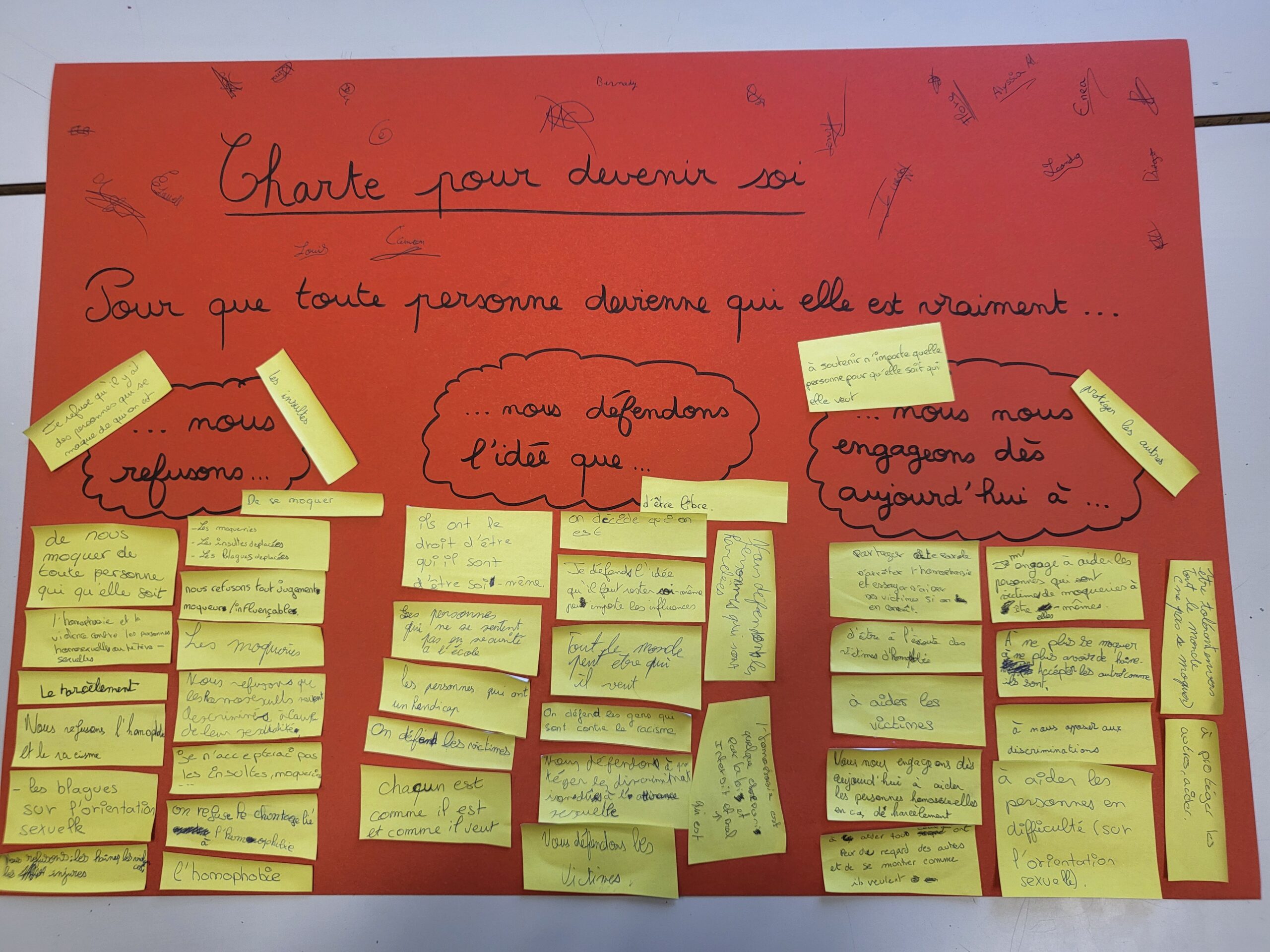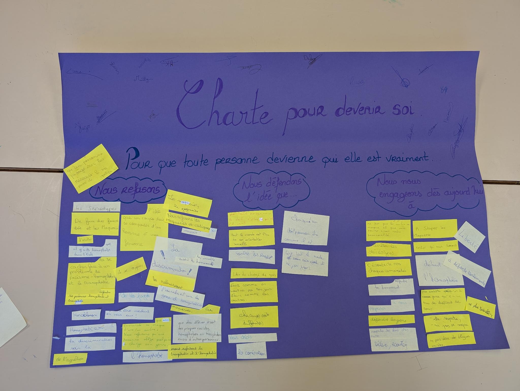 Dans le cadre de l’EVARS, les classes ont établi une charte « pour devenir soi »