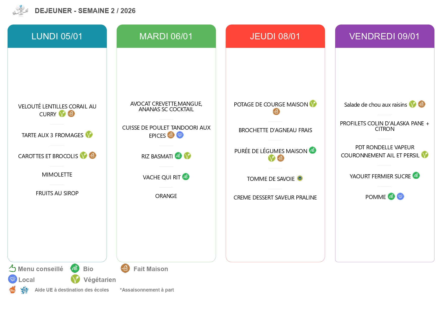 Menus de la cantine